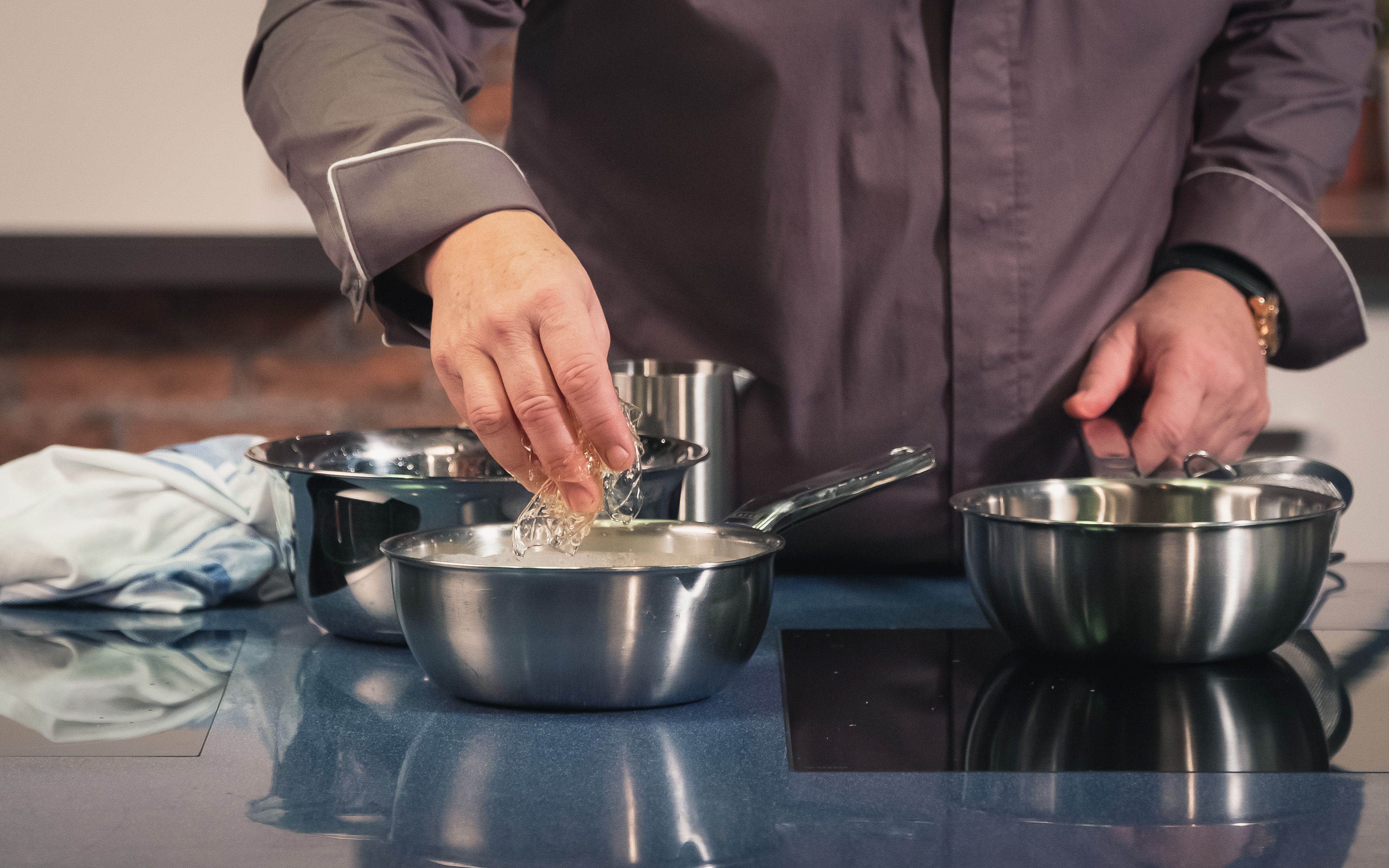 Sahne Zucker und Vanille in einen Topf geben und kurz verrühren. Den cremigen Pudding machst du ganz einfach in deinem Cookit selbst.